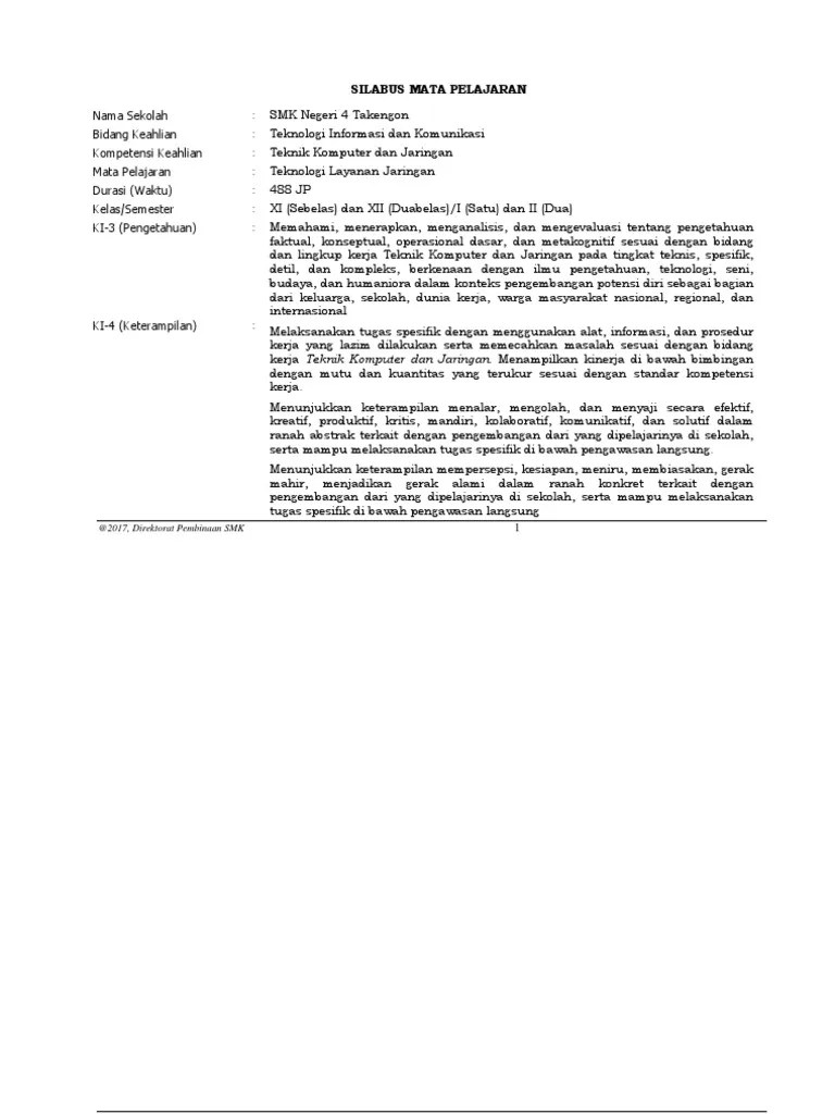 Silabus teknologi layanan jaringan kurikulum 2013 revisi 2020 download .